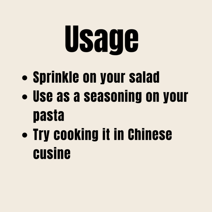 • Sprinkle directly over fresh salads, grated carrot salads, or mixed vegetables