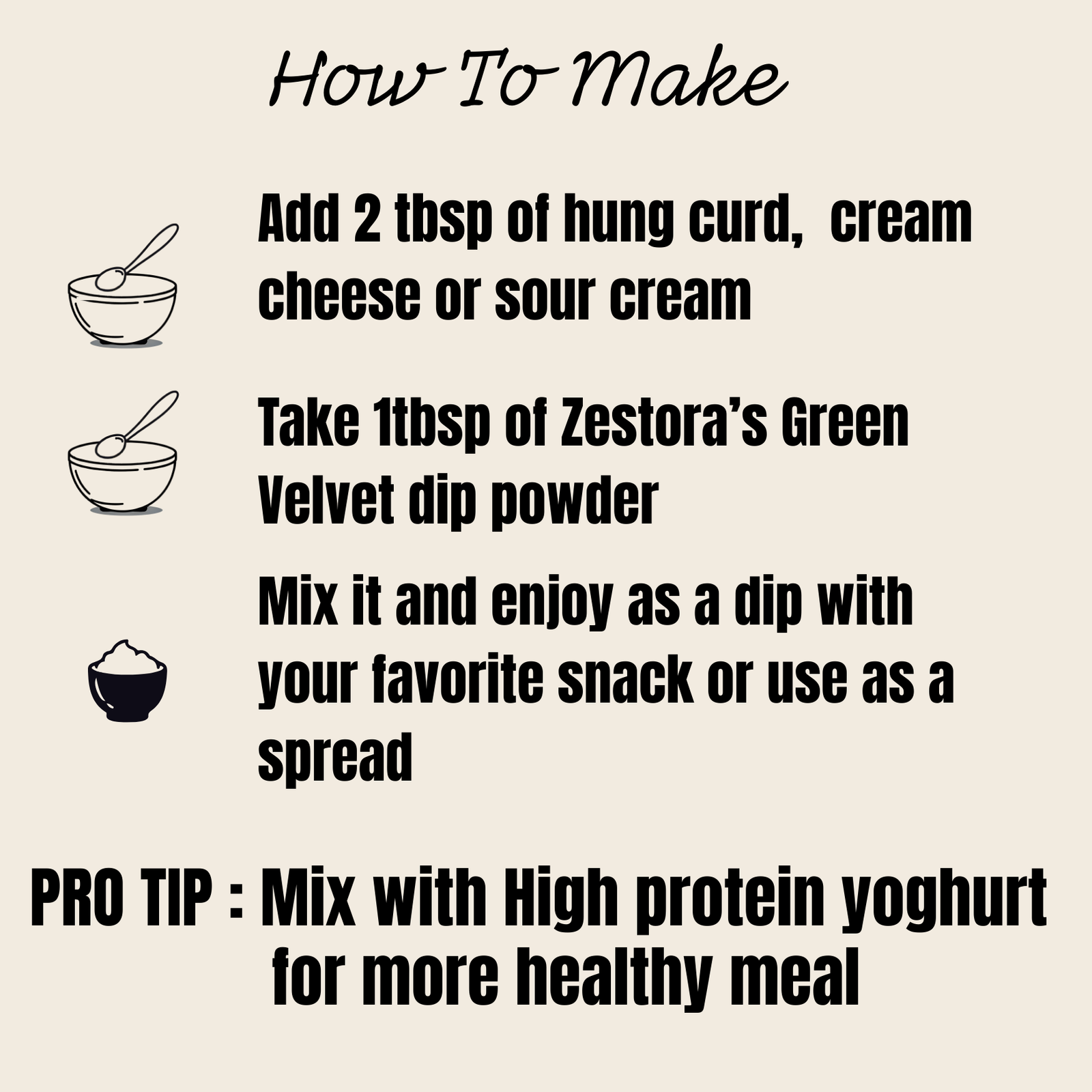 • Mix 10–15 g of green velvet dip mix