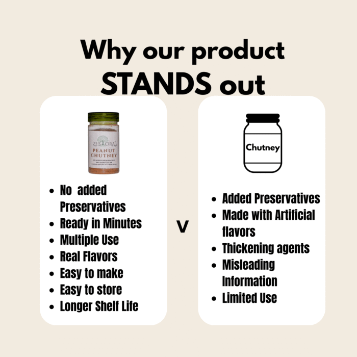 - Longer shelf life than fresh peanut chutney